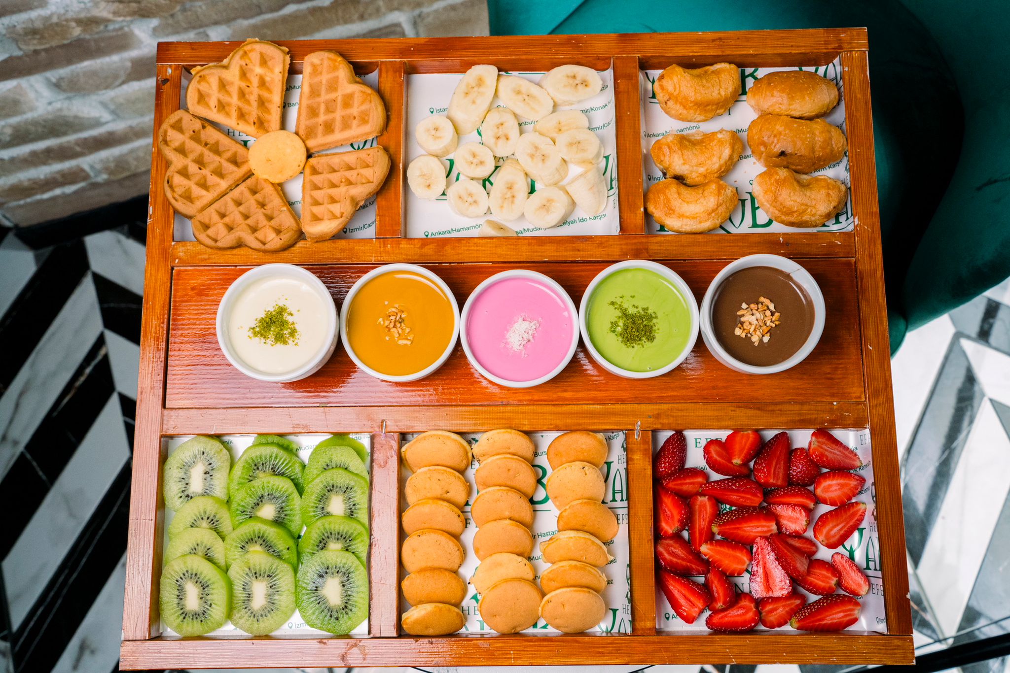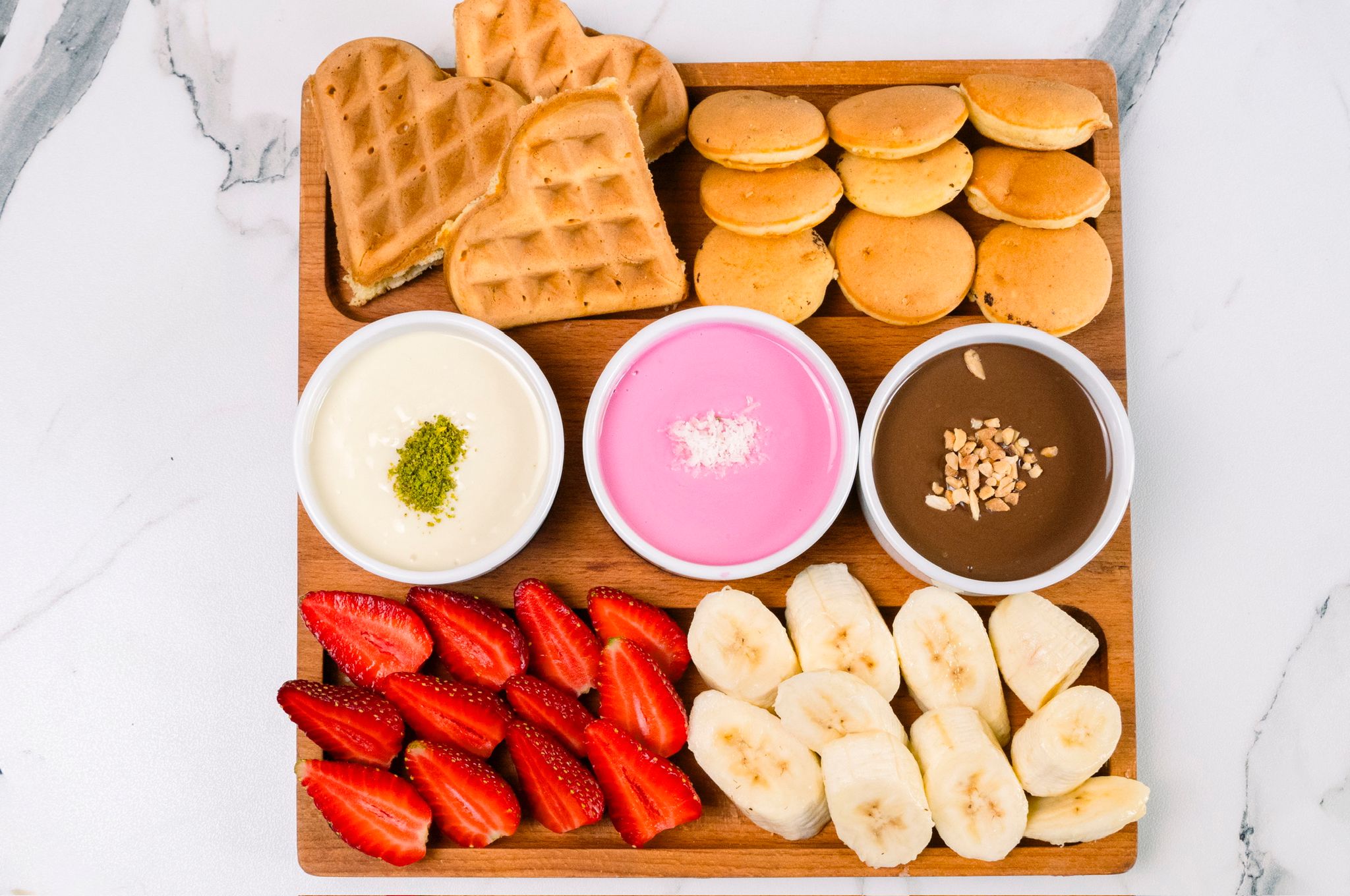 Krema belçika çilolatası muz çilek ve fransız çıtırından oluşur