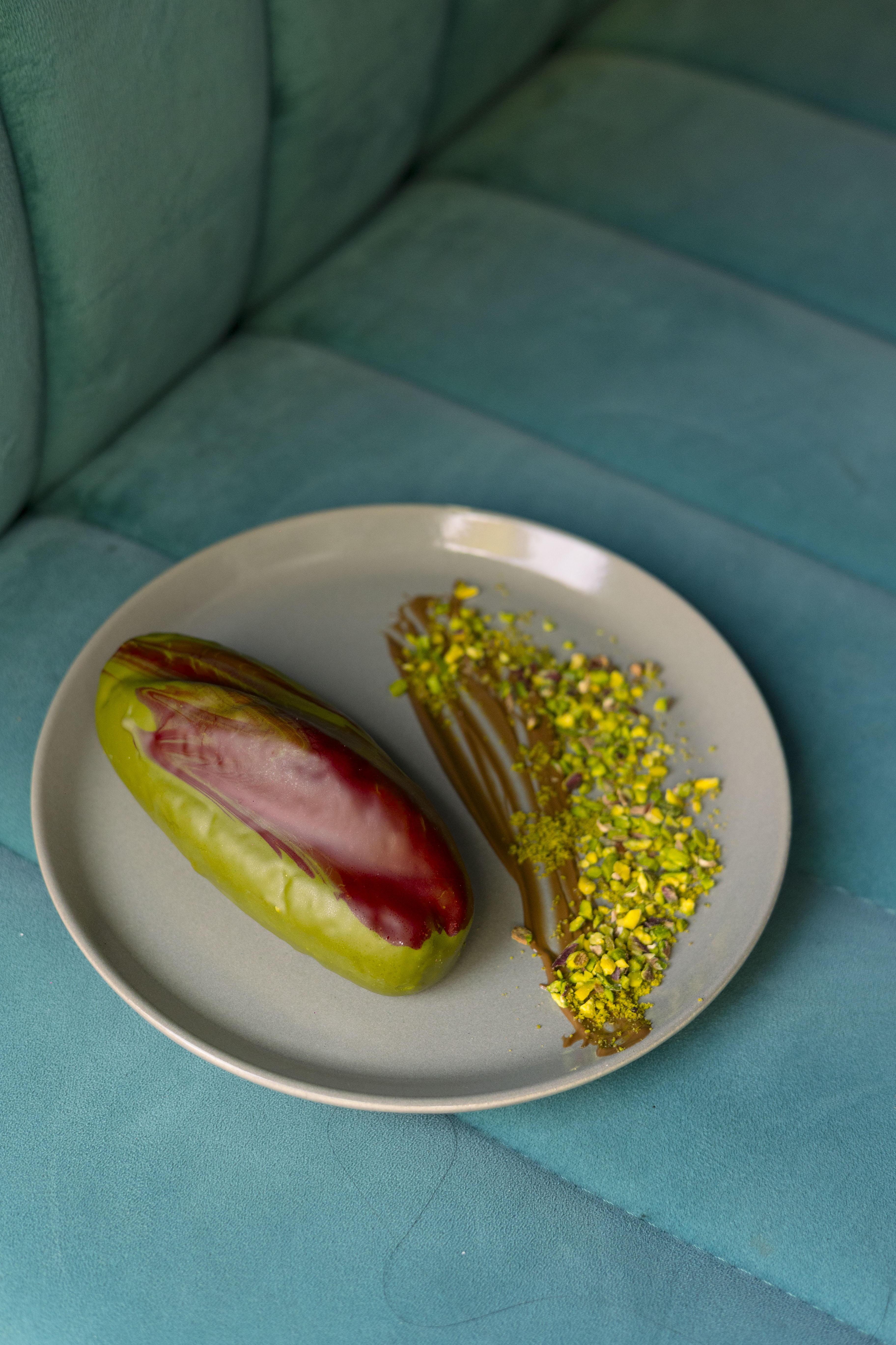 Zarafetin ve Antep fıstığının buluşması İncecik fıstık kreması, çıtır katmanlar ve merkezinde sürpriz bir lezzet… Doğal Antep fıstığının en rafine haliyle, sanatsal bir tatlı deneyimi.